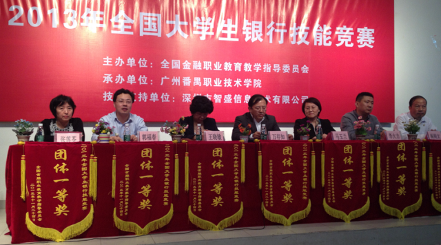 2013年11月24日,由全國金融職業(yè)教育教學(xué)指導(dǎo)委員會(huì)主辦、廣州番禺職業(yè)技術(shù)學(xué)院承辦、深圳智盛信息技術(shù)股份有限公司支持的“2013年全國大學(xué)生銀行技能競賽”在廣州番禺職業(yè)技術(shù)學(xué)院舉行。中國人民銀行中國金融培訓(xùn)中心主任、全國金融行業(yè)指導(dǎo)委員會(huì)常務(wù)副主任委員萬存知,中國人民銀行中國金融培訓(xùn)中心副主任、全國金融行指委常務(wù)秘書長馬玉蘭,廣州番禺職業(yè)技術(shù)學(xué)院副校長王曉敏,智盛公司總經(jīng)理彭家源等領(lǐng)導(dǎo)蒞臨比賽現(xiàn)場。來自全國84所高職院校的252名選手和領(lǐng)隊(duì)、指導(dǎo)老師以及相關(guān)單位和觀摩單位代表共700余人參加活動(dòng)。