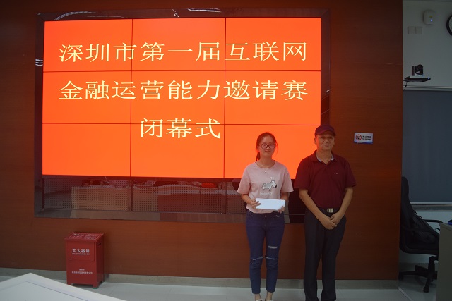 深圳大學(xué)經(jīng)濟(jì)學(xué)院金融系主任徐進(jìn)教授為大賽一等獎(jiǎng)獲得者頒獎(jiǎng)