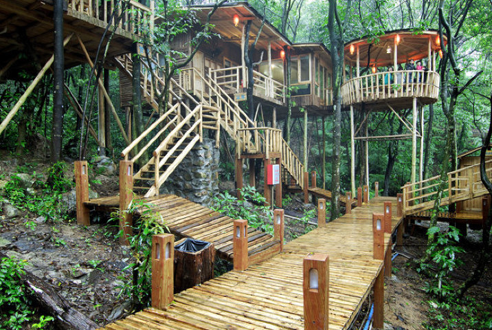 晚上我們?nèi)胱×嗽O(shè)施豪華,坐擁壯麗山景,依傍恬靜湖水,交相輝映,讓您沉浸于質(zhì)樸而浪漫的世外桃源的寶晶宮天鵝湖度假酒店。
