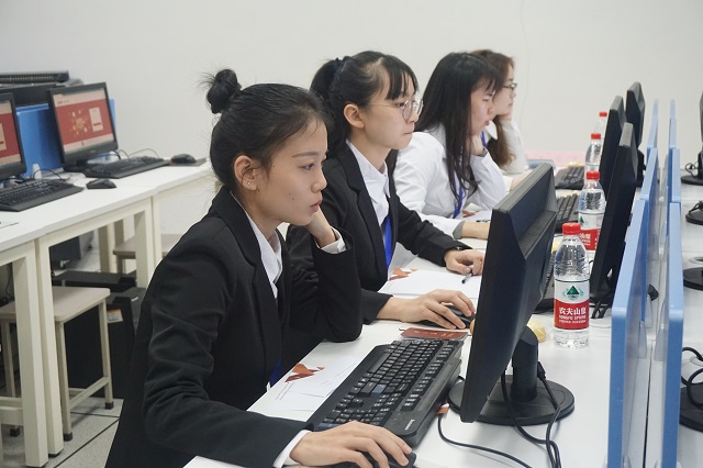 隨著時間的流逝,現(xiàn)場的氛圍達到了最高峰,賽場上只剩下敲擊鍵盤的聲音,選手們全身心的投入到比賽當中。