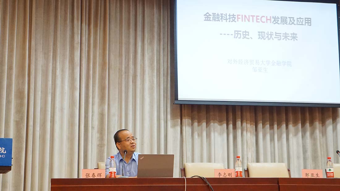 開幕式結束后,先由對外經濟貿易大學金融學院院長鄒亞生圍繞"ABCD等新技術在金融行業(yè)發(fā)展及應用現(xiàn)狀”這一主題;分析了人工智能、區(qū)塊鏈、云計算和大數(shù)據(jù)這四大領域在金融行業(yè)的發(fā)展前景與應用情況。