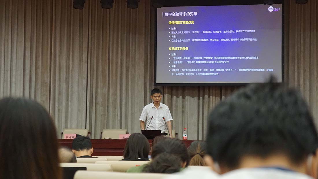 下午,由廣州運通鏈達金服科技有限公司總經理鄒均做“區(qū)塊鏈技術在金融領域應用探討落地應用場景方面”主題報告;以區(qū)塊鏈在數(shù)字化轉型中的作用來進行展開分享。