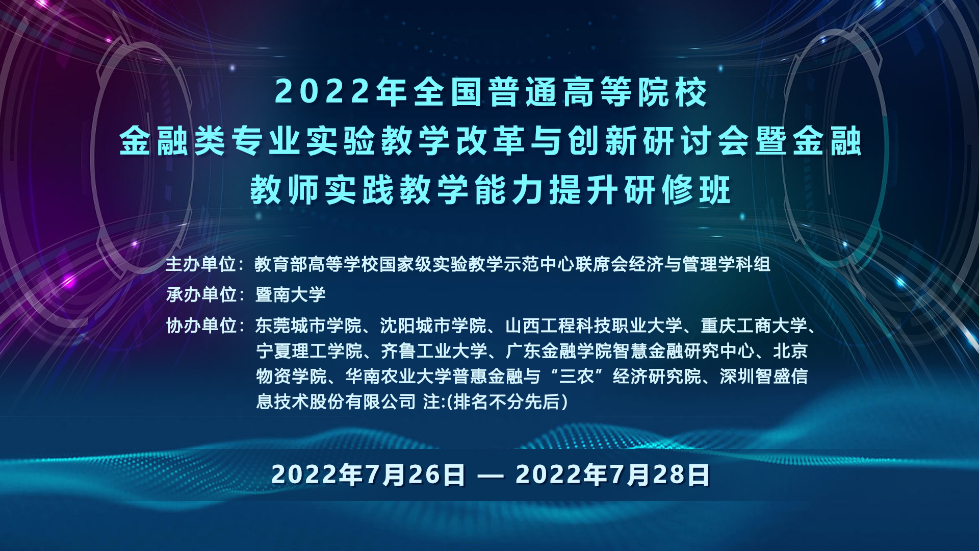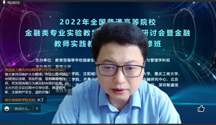 受新冠疫情影響,會(huì)議采取線上的方式開展。此次會(huì)議面向普通高等學(xué)校圍繞“金融類專業(yè)實(shí)驗(yàn)教學(xué)改革與創(chuàng)新”這一主題作深入研討。