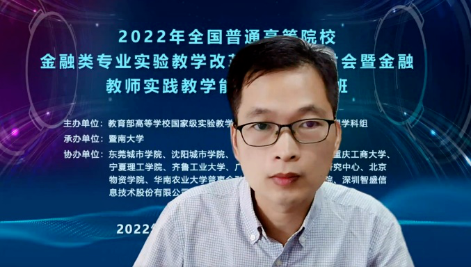 教育部高等學(xué)校國(guó)家級(jí)實(shí)驗(yàn)教學(xué)示范中心聯(lián)席會(huì)經(jīng)管學(xué)科組秘書長(zhǎng)周紅剛作“金融學(xué)科實(shí)驗(yàn)教學(xué)與一流課程建設(shè)”的主題報(bào)告、暨南大學(xué)南方高等金融研究院(SCIF)副院長(zhǎng)沈軍作“數(shù)字貨幣、美元體系邏輯與國(guó)際金融權(quán)力重構(gòu)”主題分享、廣東金融學(xué)院互聯(lián)網(wǎng)金融研究中心主任藍(lán)美靜作“金融科技類課程建設(shè):理論與實(shí)驗(yàn)的結(jié)合、金融科技類課程建設(shè):線上線下混合式教學(xué)框架搭建”主題分享、東莞城市學(xué)院數(shù)字經(jīng)濟(jì)學(xué)院名譽(yù)院長(zhǎng)賴忠孝作“金融人才培養(yǎng)規(guī)格的探索”主題分享、齊魯工業(yè)大學(xué)經(jīng)管學(xué)部金融科技系主任張路作“產(chǎn)教融合協(xié)同育人背景下金融科技人才培養(yǎng)模式的探索與實(shí)踐”主題分享、廣東金融學(xué)院金融與投資學(xué)院實(shí)驗(yàn)室主任王梅作“商業(yè)銀行課程教學(xué)及實(shí)驗(yàn)體系建設(shè)”主題分享、天津財(cái)經(jīng)大學(xué)金融學(xué)院教學(xué)實(shí)驗(yàn)中心主任李兆軍作“區(qū)塊鏈金融實(shí)訓(xùn)教學(xué)經(jīng)驗(yàn)分享”主題分享、寧夏理工學(xué)院經(jīng)濟(jì)管理學(xué)院金融學(xué)專業(yè)負(fù)責(zé)人王茹作“應(yīng)用型高校金融實(shí)驗(yàn)室建設(shè)及應(yīng)用”主題分享、重慶工商大學(xué)金融學(xué)院(重慶金融學(xué)院)金融學(xué)系主任王偉作“綠色金融在商業(yè)銀行的應(yīng)用”主題分享、北京物資學(xué)院金融學(xué)專業(yè)負(fù)責(zé)人王寶森作“完善金融科技課程體系,提高金融科技師資理論與實(shí)際結(jié)合能力”主題分享、沈陽城市學(xué)院金融學(xué)系主任蔡苗苗作“金融科技創(chuàng)新背景下提升金融教學(xué)能力的有效途徑”主題分享。