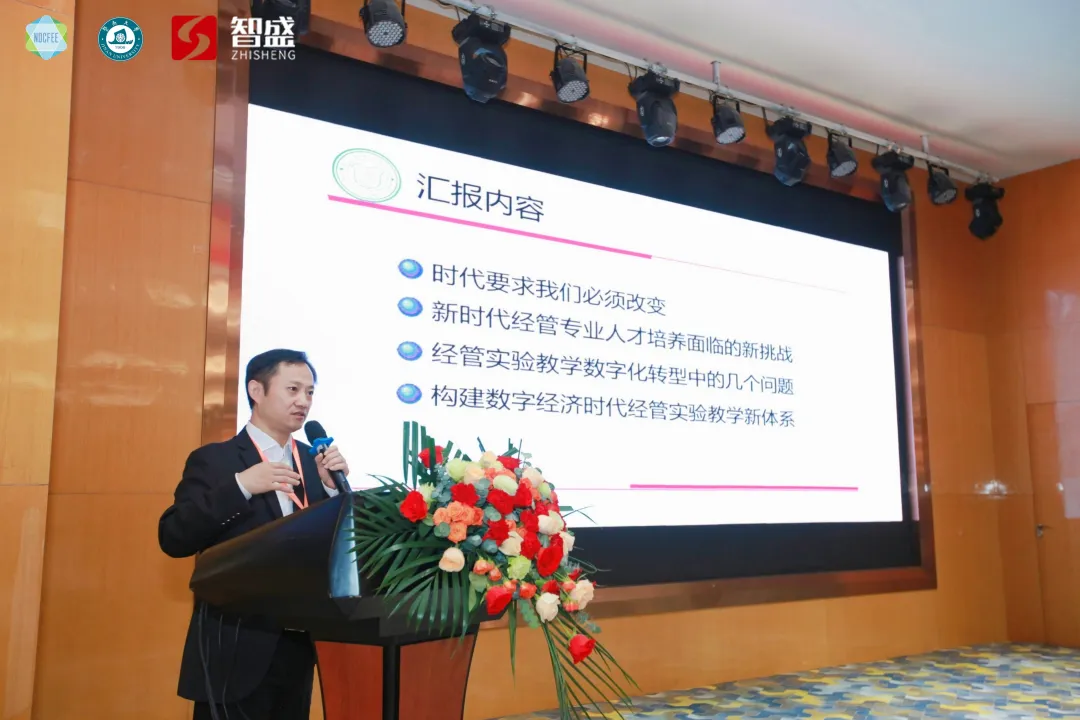 周紅剛教授以經(jīng)管類實驗教學在數(shù)字經(jīng)濟為何需要改革以及如何改革為主題,首先在會議中他介紹是時代讓我們必須改變,二十大報告提到推進教育數(shù)字化以及教育部明確提出全面推進高等教育教學數(shù)字化等,與此同時,數(shù)字經(jīng)濟的告訴發(fā)展對高等教育提出了更高的要求,所以目前新時代經(jīng)管專業(yè)人才培養(yǎng)面臨到新挑戰(zhàn),如升級的復合型人才需求,隨后周紅剛教授詳細剖析了經(jīng)管實驗教學數(shù)字化轉(zhuǎn)型中的問題,在數(shù)字化經(jīng)管專業(yè)人才培養(yǎng)目標和人才定位不夠明確,科研成果向教學的轉(zhuǎn)化、個性化教學不足等,因此需要構(gòu)建數(shù)字經(jīng)濟時代經(jīng)管實驗教學新體系,要明晰供與需,從教師的教學資源和學生需求出發(fā),以學生為中心,關(guān)注學生的創(chuàng)新思維與批判性思維,加強實驗教學師資隊伍建設。