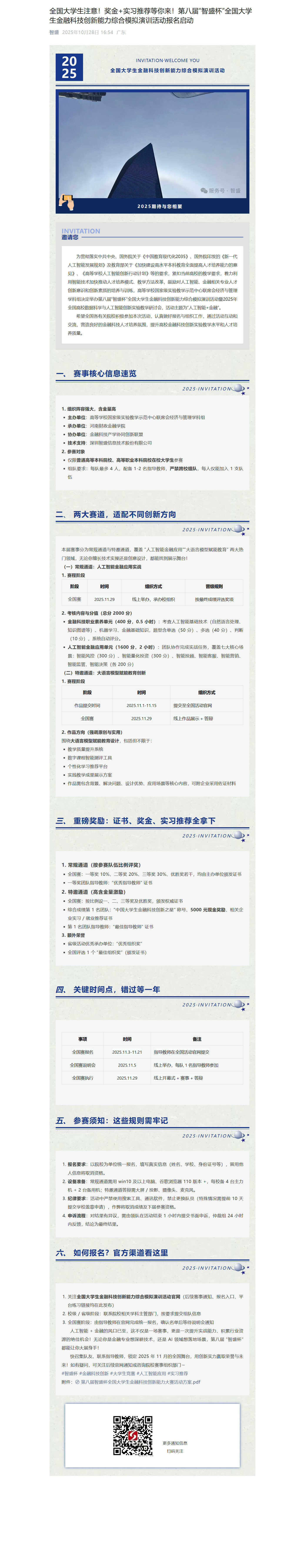 全國大學生注意!獎金+實習推薦等你來!第八屆“智盛杯”全國大學生金融科技創(chuàng)新能力綜合模擬演訓活動報名啟動